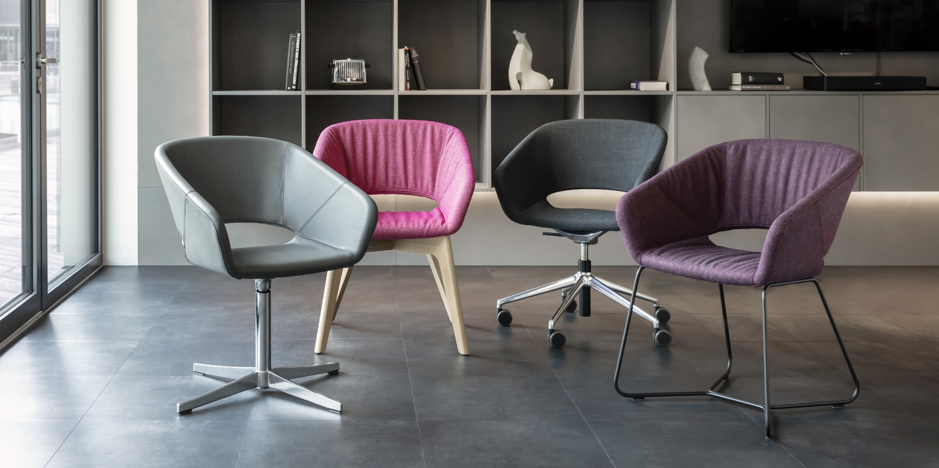 Vielfalt trifft auf Gestaltungsqualität. In Sachen Design und Komfort steht Averio XS seinem großen Vorbild Averio in nichts nach. Das Spiel mit Bezugsmaterialien und Polsterausführungen, die vielseitigen Gestellvarianten und die charakteristische Öffnung im Rücken sorgen bei Averio XS für seine einzigartige, individuelle Optik.